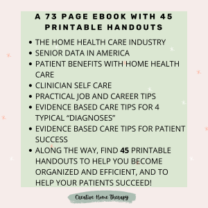 73 page E book with 45 patient care printable handouts, plus practical tips, and evidence based health information!