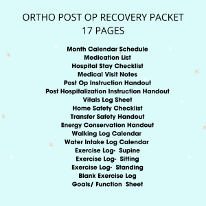 17 EDUCATIONAL AND ORGANIZATIONAL HANDOUTS FOR NURSE, THERAPIST FOR POST OP ORTHO CLIENTS. Freebie 3 safety signs!